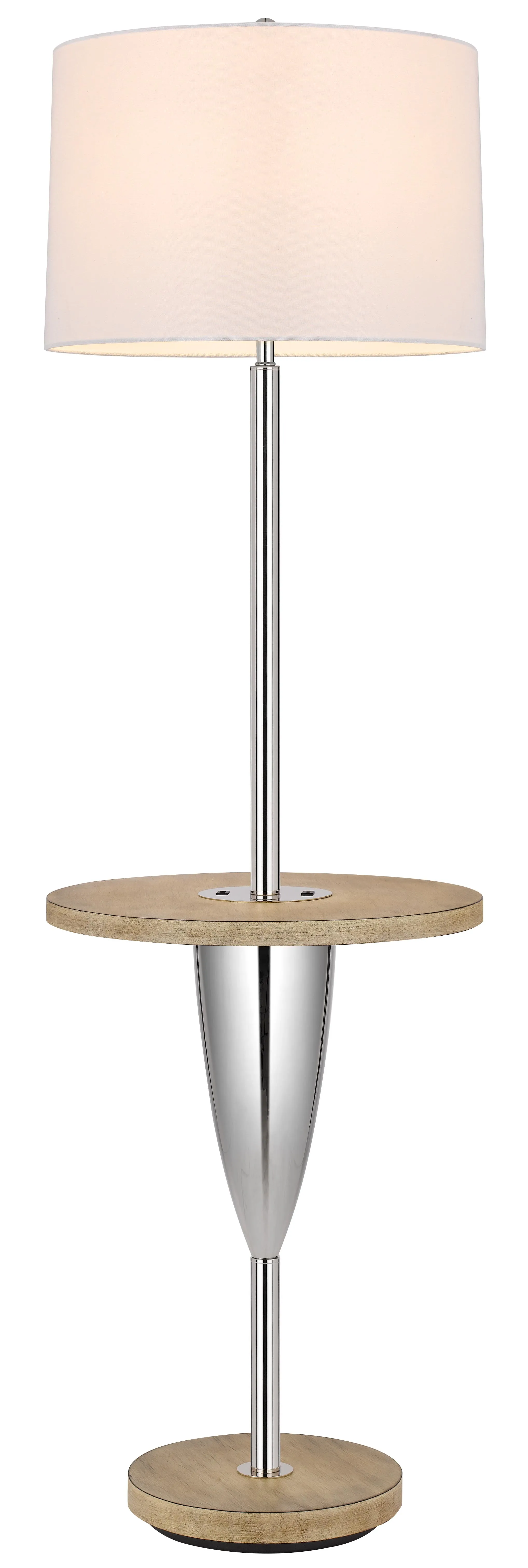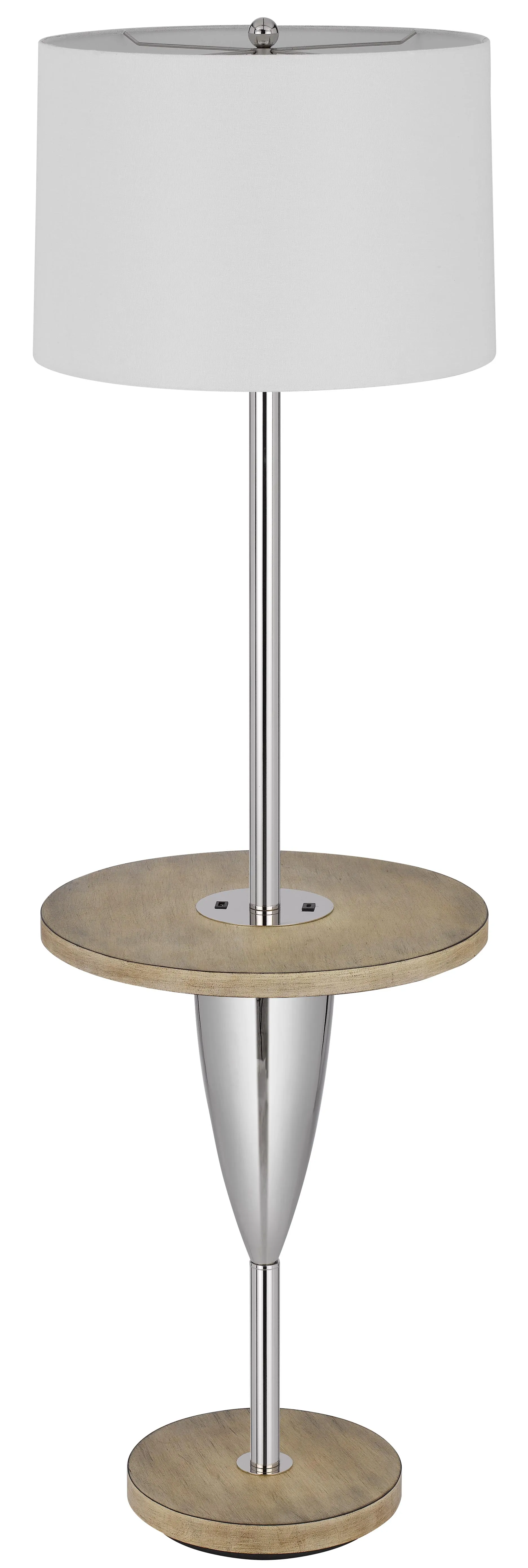 150w 3 Way Lockport Metal Floor Lamp With Rubber Wood Tray Table And Base And 1 USB And 1 Type C USB Charging Port