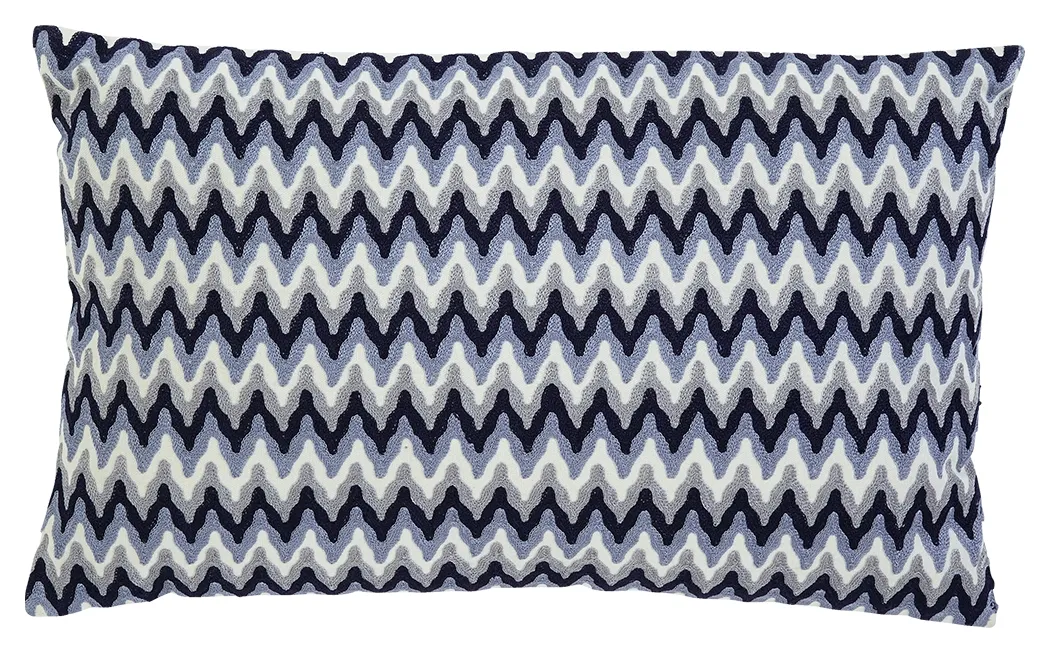 Embroidered with a fresh and funky flamestitch pattern, this accent pillow sizzles with style. Nautical element incorporates a cool splash of color.