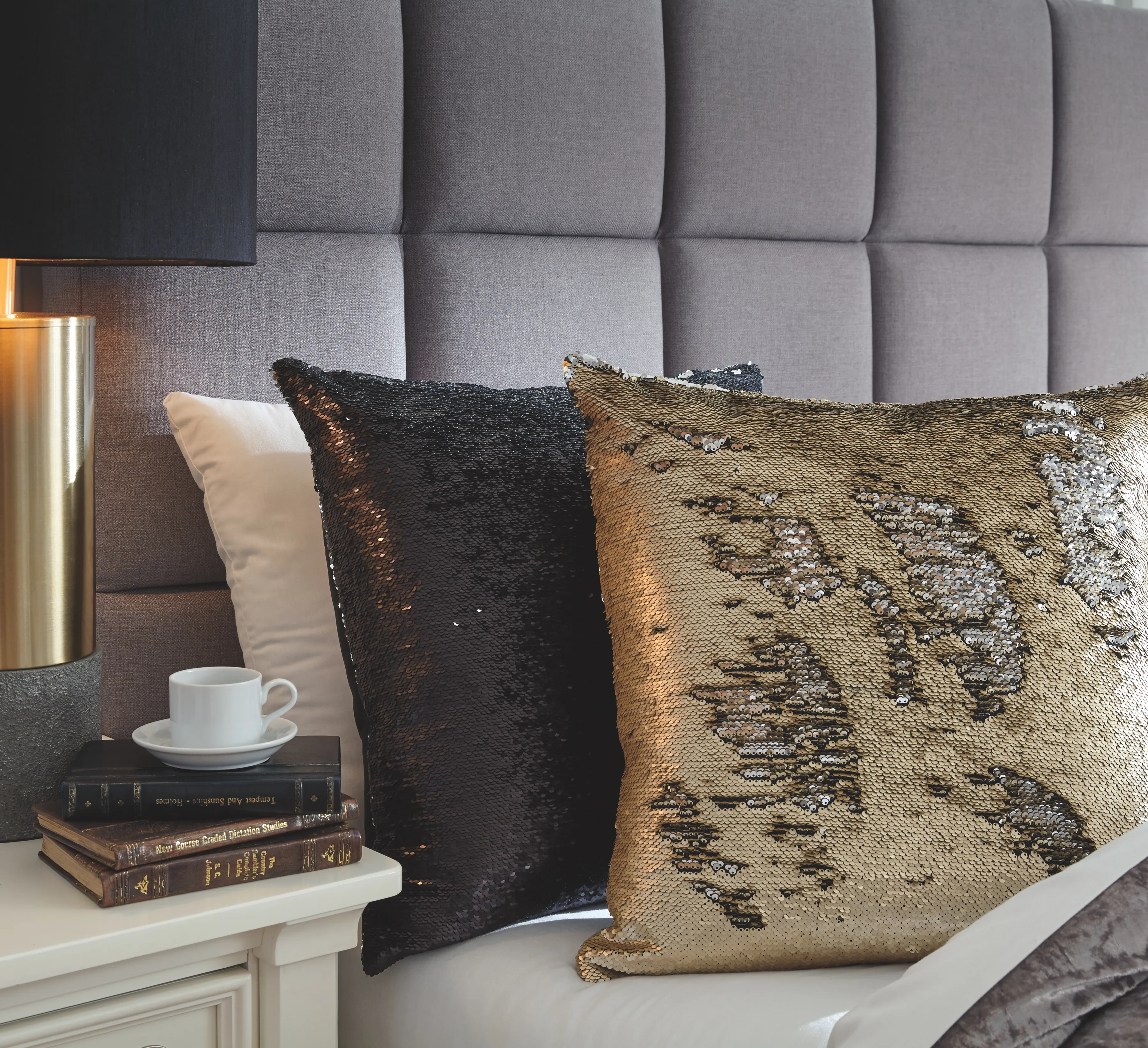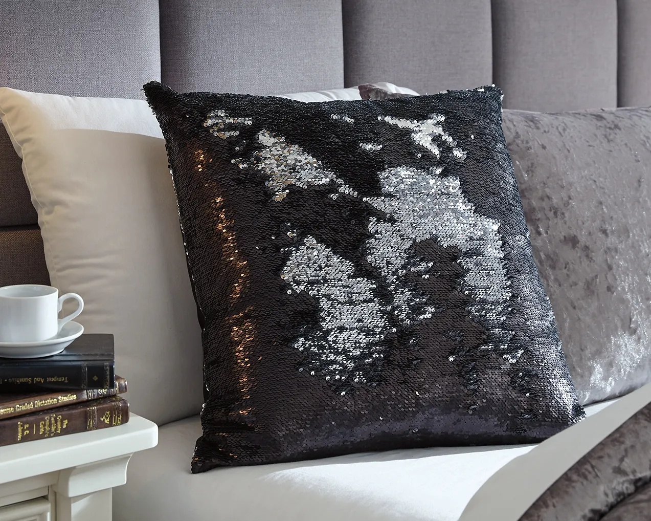 Stay on top of your fashion A-game with this accent pillow. Black and silvertone sequined front exudes glamorous noir.