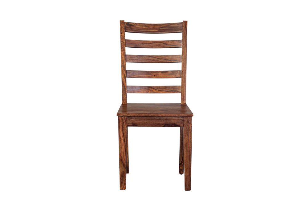 The solid wood Sonora dining chair features an elegant curved back with tapered legs and a horizontal slat back. Made from honey colored sheesham wood, it features beautiful seat beveling which pairs nicely with the Sonora Dining Table Collection.