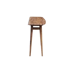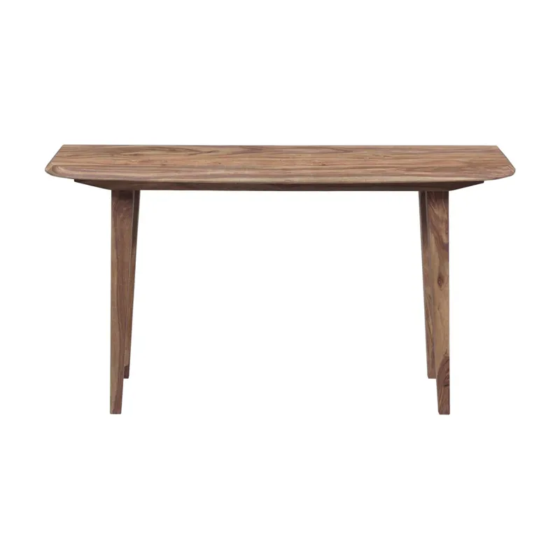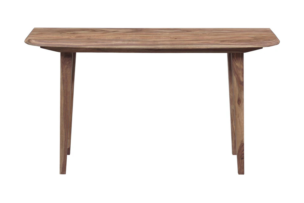 The Fusion Console Sofa Table is a part of a midcentury modern collection featuring beautiful beveled edges and elegant tapered wood legs. Made from solid sheesham wood, this is an heirloom quality piece to be enjoyed for years to come.