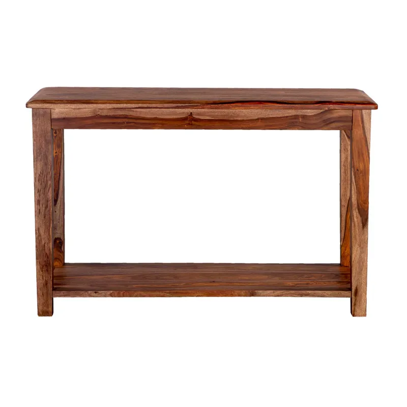 Made from solid honey colored sheesham wood, the Sonora Console Table features hours of handcraftsmanship. With beautiful beveling around the table top and elegant tapered legs, it showcases the natural markings and rich color variation of natural sheesham wood. A heritage piece built for many years of enjoyment.