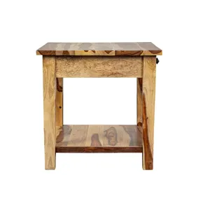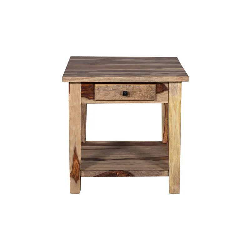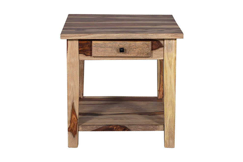 The Tahoe End table is a beautiful living room accent piece. Made from solid sheesham wood, it features one drawer for storage (perfect for remotes) and a shelf for keeping your books and magazines. Coordinate with our Tahoe Coffee Table.