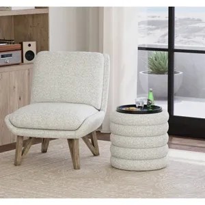 The Zuri storage ottoman is the multitasking marvel your living room needs, available in cream boucle upholstery or mocha faux leather for a chic, contemporary look. Its channel-tufted sides create a stylish tiered effect, while the plush cushioned top is perfect for kicking up your feet. This versatile ottoman doubles as a hidden storage solution—simply lift the lid to stow away blankets, board games, or everyday clutter. When it’s time to entertain, flip the top to reveal a solid wood serving tray, perfect for snacks or use as an end table. Built with durable plywood construction, Zuri seamlessly blends style, function, and durability to elevate any space.