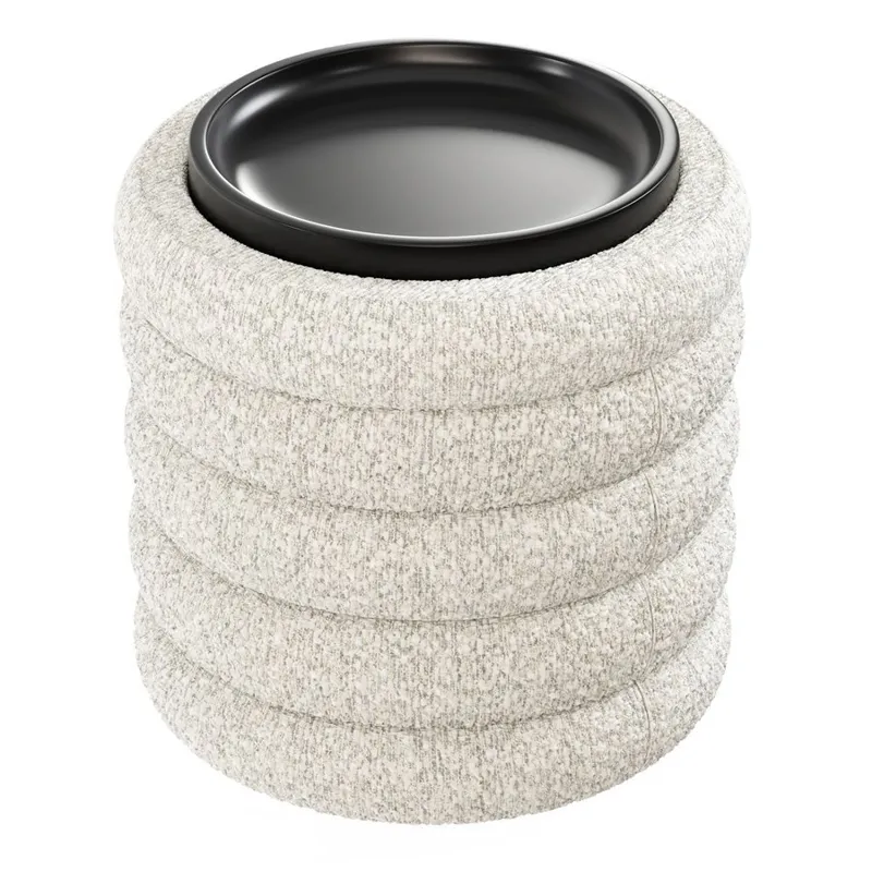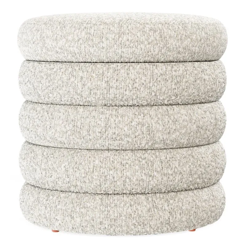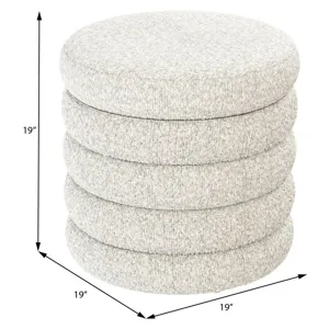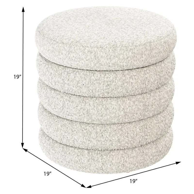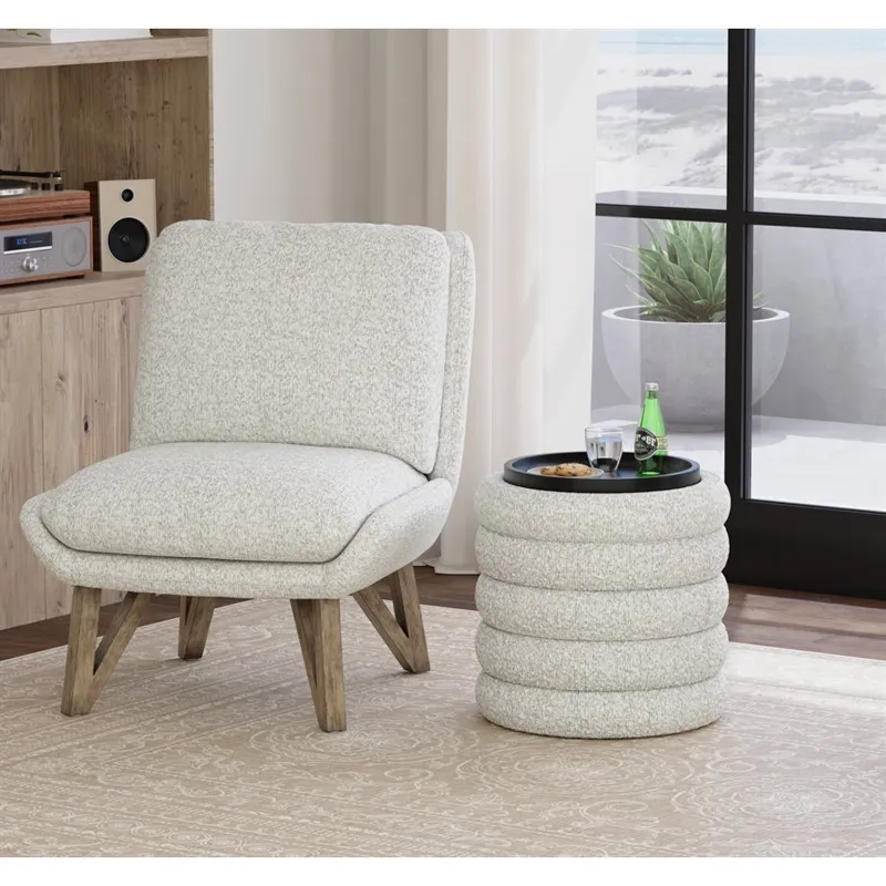 19" Round Channeled Ottoman w/Storage & Tray - Soothe Fog