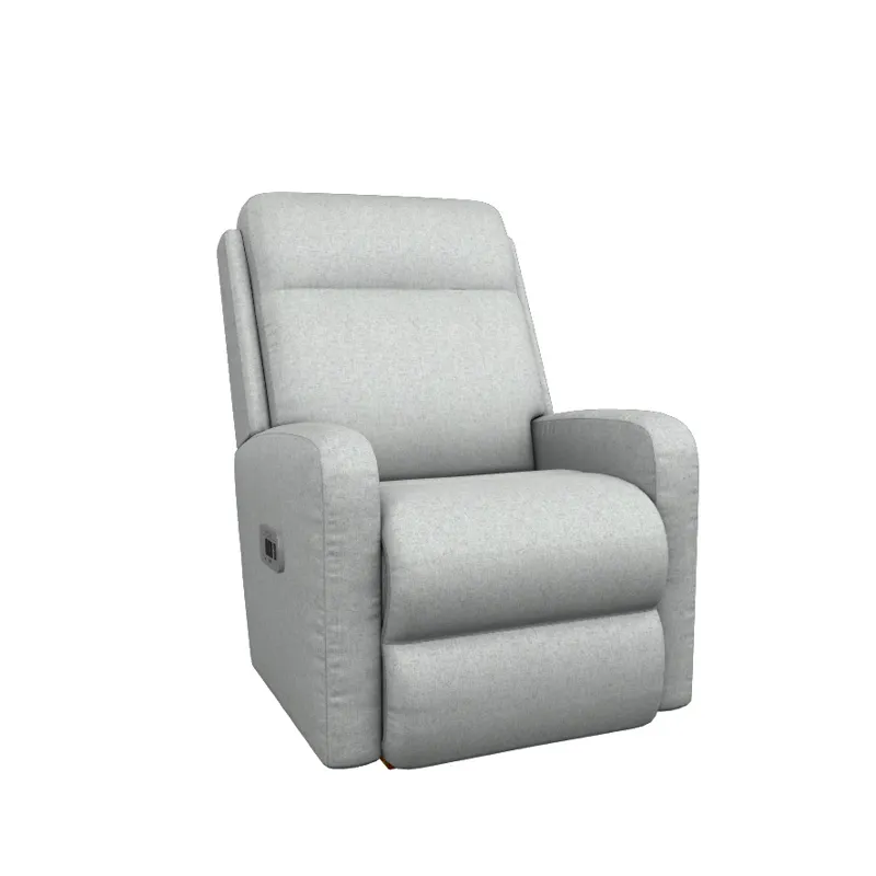 Looking for reclining comfort with contemporary style? The Finley Power Rocking Recliner with Headrest and Lumbar fits the bill with modern lines, sleek track arms and a tall foam back that gives it a neat and structured look. The ultra-plush chaise seat and legrest cradle the body in a continuous zone of comfort. The head-to-toe power-adjustable control allows you to adjust the back, legrest, headrest and lumbar for countless combinations of customized comfort. Plus, a USB charging port and two memory settings that save your favorite reclining positions. When you’re not reclining, it’s a relaxing rocker with a smooth, graceful motion.