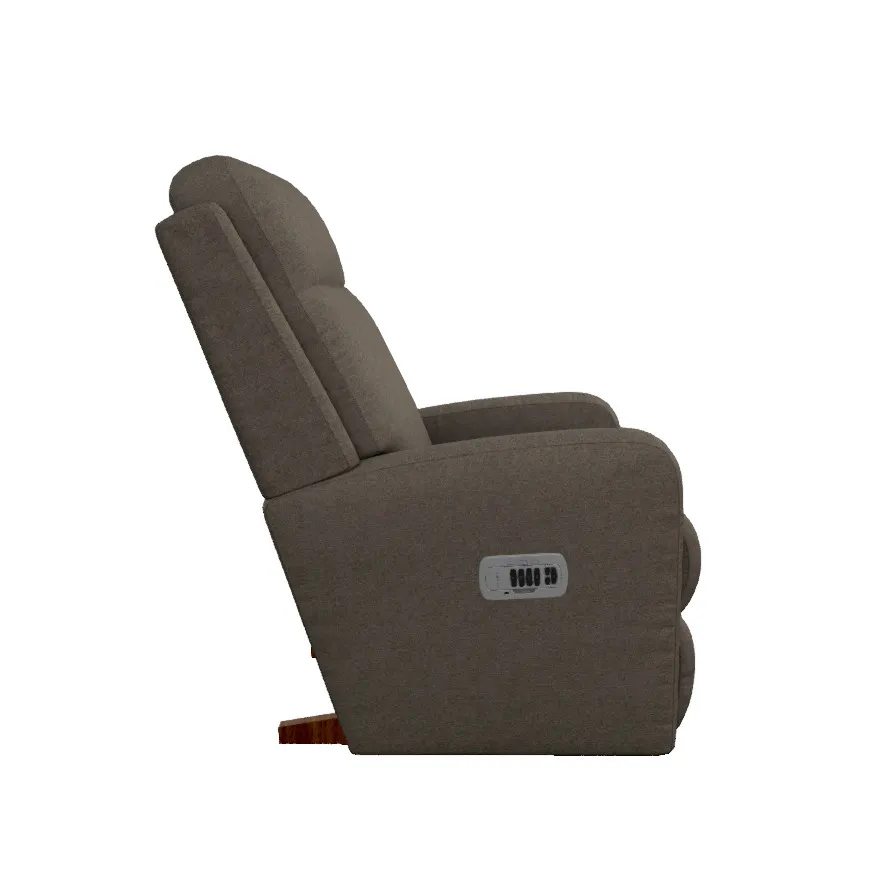 Looking for reclining comfort with contemporary style? The Finley Power Rocking Recliner with Headrest and Lumbar fits the bill with modern lines, sleek track arms and a tall foam back that gives it a neat and structured look. The ultra-plush chaise seat and legrest cradle the body in a continuous zone of comfort. The head-to-toe power-adjustable control allows you to adjust the back, legrest, headrest and lumbar for countless combinations of customized comfort. Plus, a USB charging port and two memory settings that save your favorite reclining positions. When you’re not reclining, it’s a relaxing rocker with a smooth, graceful motion.