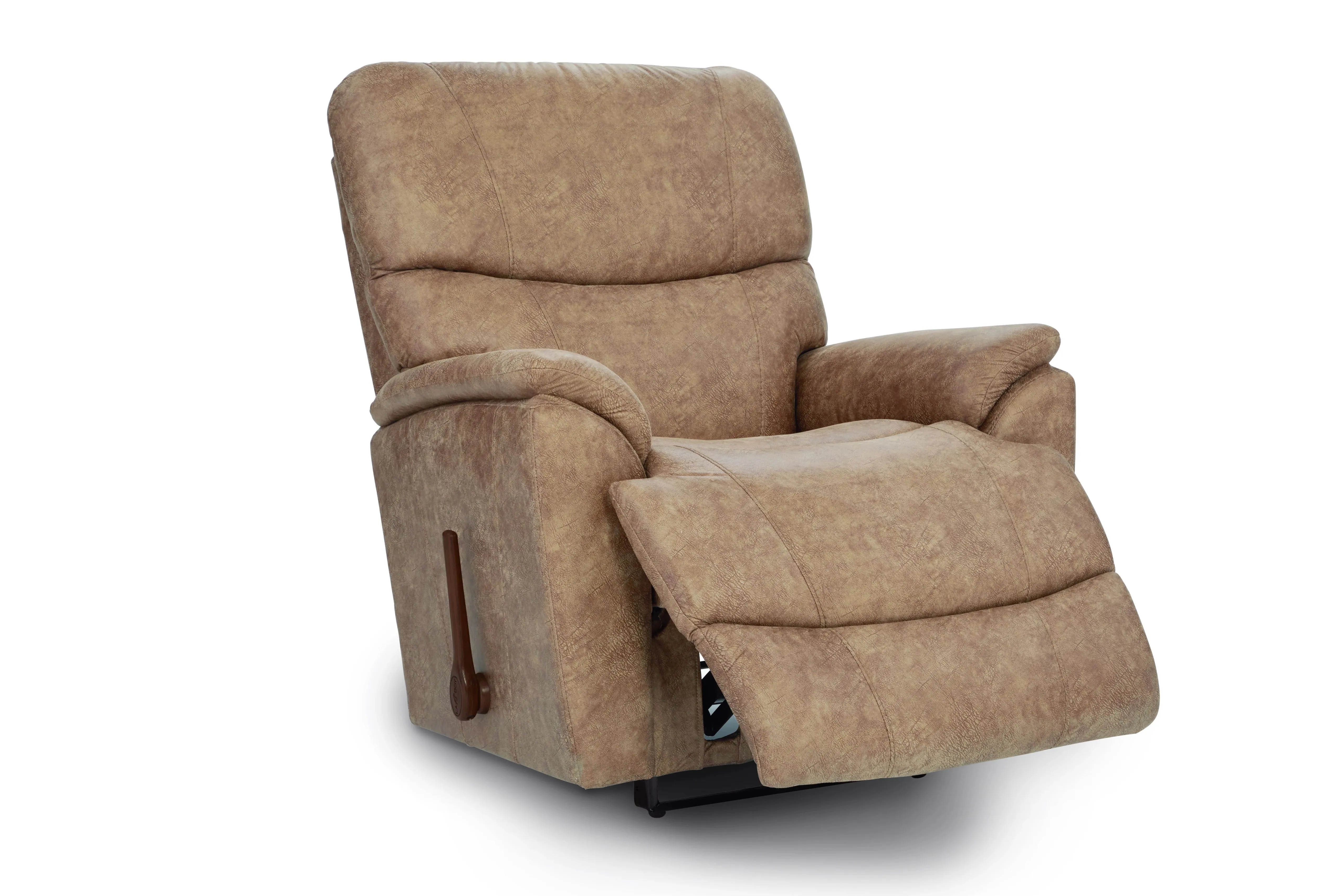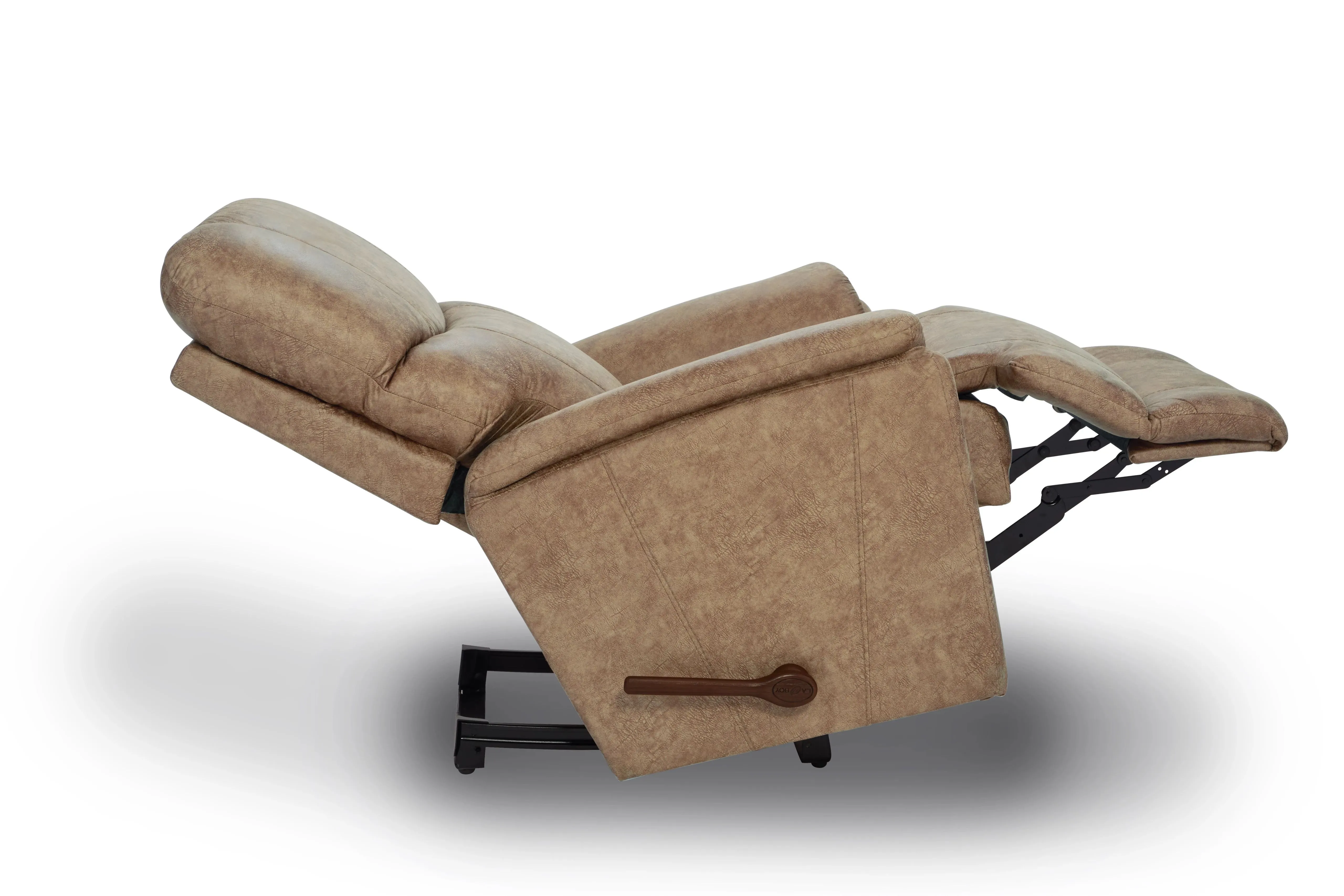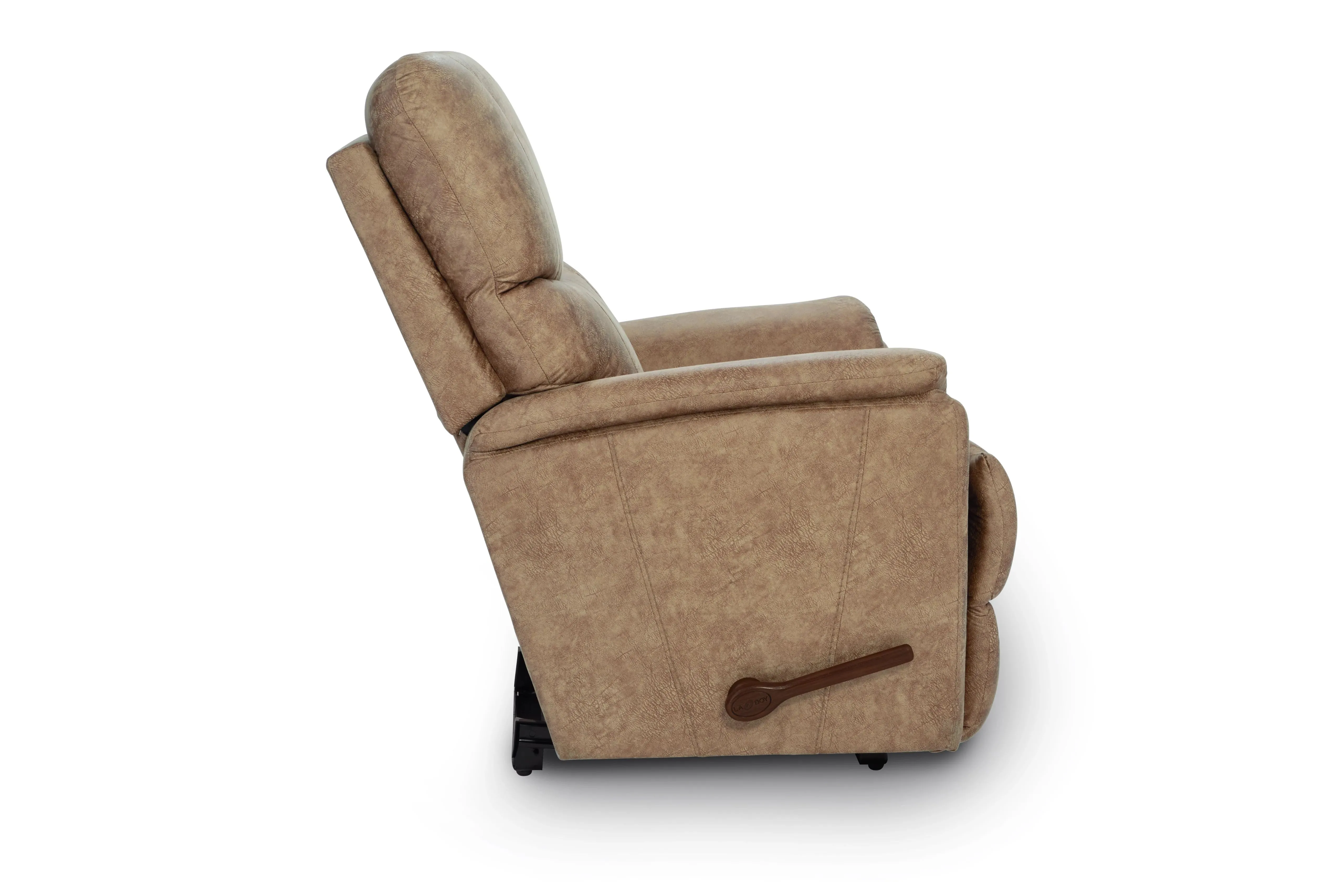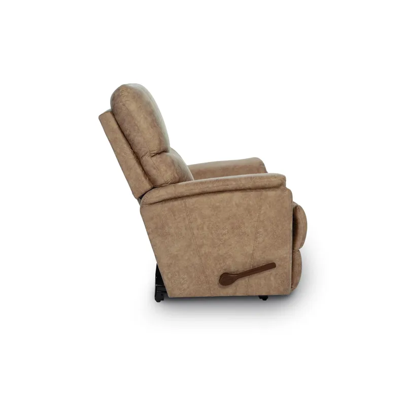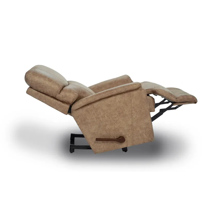 An updated silhouette, complete with slightly flared arms and a sleek tall back give Trouper a look that’s fresh and contemporary. It’s also one comfortable recliner. The sculpted bucket seat cradles you in softness while the padded split back provides superb head and lumbar support. Simply use the convenient handle on the outside arm to raise the legrest for reading, relaxing or watching TV. Best of all, you can place this recliner mere inches from a wall.
