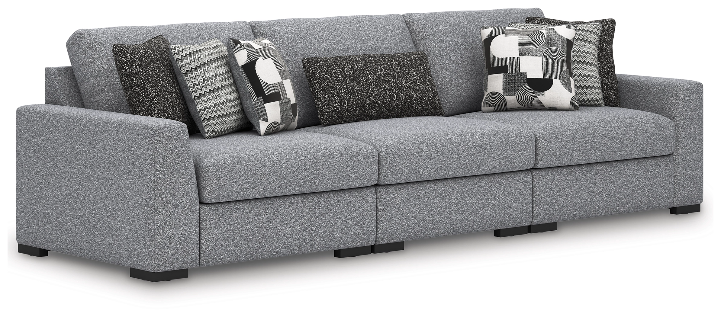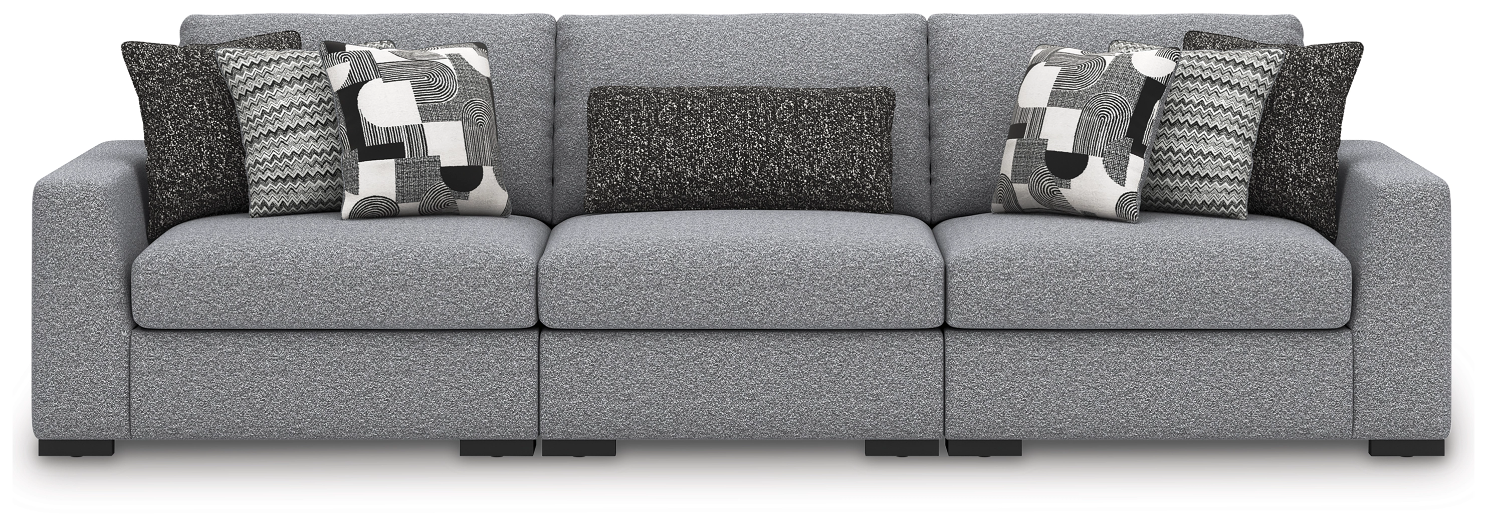 Includes 3 modular pieces: left-arm facing corner chair, armless chair and right-arm facing corner chair